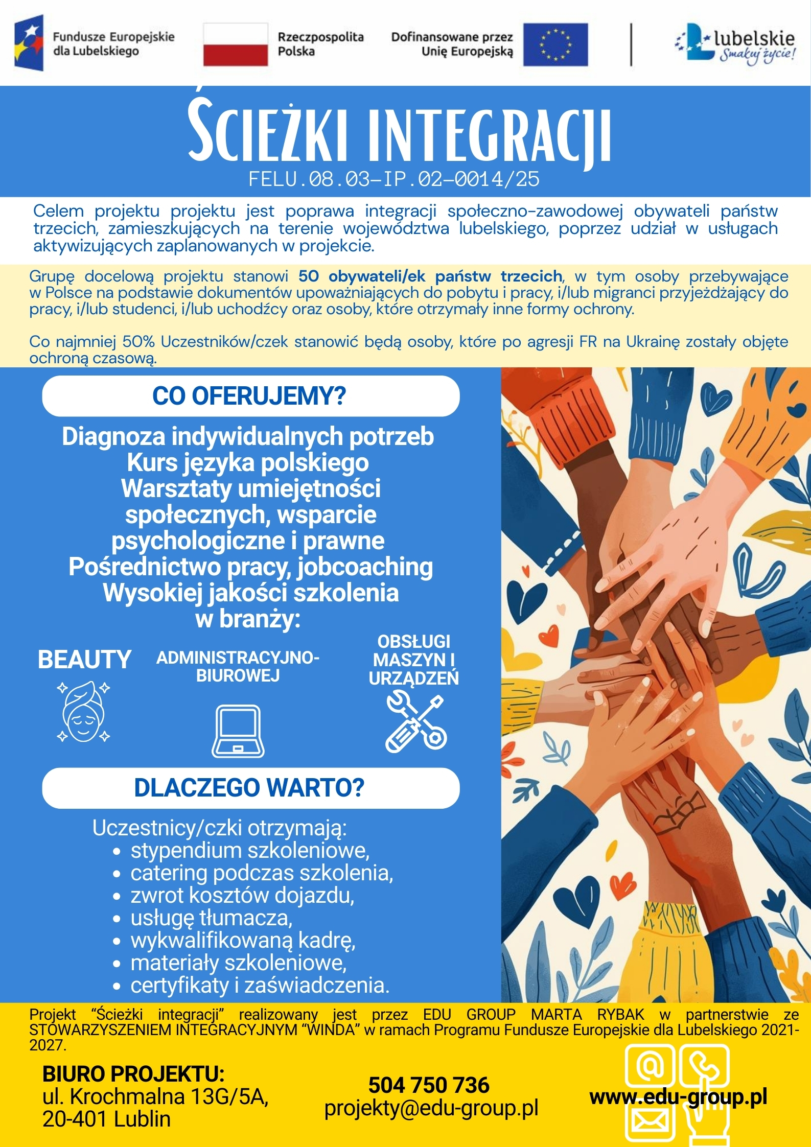Projekt "Ścieżki integracji" nr FELU.08.03-IP.02-0014/2 dla obywateli państw trzecich z województwa lubelskiego