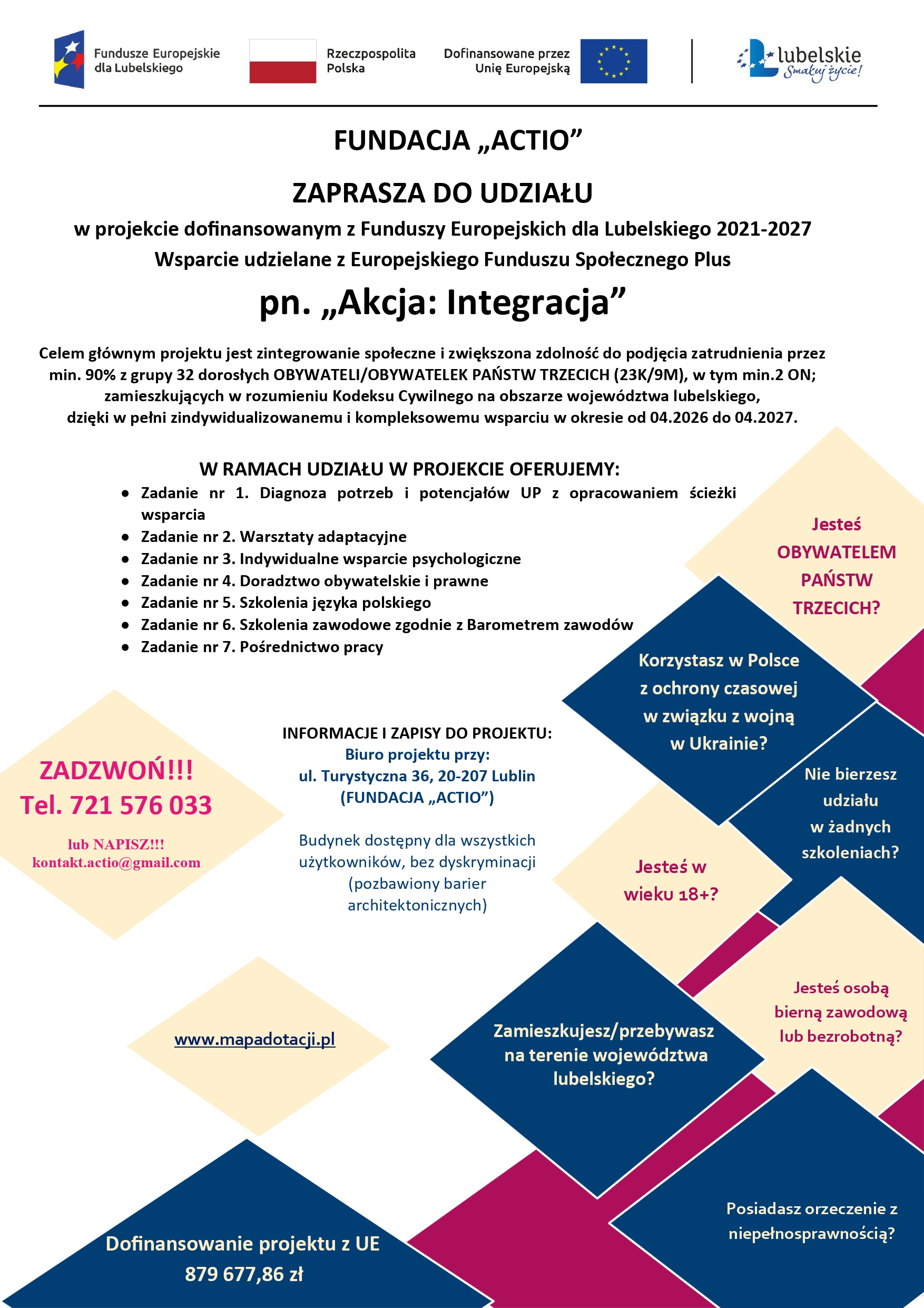 „Akcja: Integracja” nr FELU.08.03-IP.02-0036/25 dla Obywateli Państw Trzecich